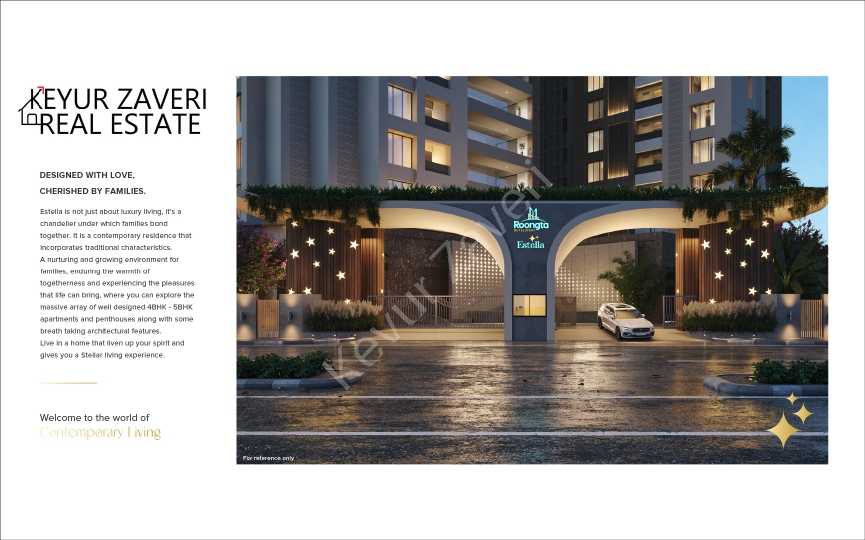 🏙 4 &5 BHK Luxurious living 🏙 ROONGTA DEVELOPERS brings you an exclusive opportunity, 4&5 BHK apartments with Luxurious amenities:- Modern Lifestyle Amenities – Cafeteria ☕ – Spa – Salon – Banquet Hall (1000 pax capacity) – Theatre 🎭🎦 – 2 Badminton Court 🏸 – Squash Court 🏓 – Clubhouse 🏤 – 4 Guest Room – Indoor Swimming Pool🏊♂️ – Temple 🛕 – Open Net Cricket 🏏 – Gymnasium 🏋️ – First Aid Clinic ⛑️ – Skating Area 🛼 – Garden Area🎍- 40000 Sq. Ft 2 LEVEL BASEMENT PARKING ✅✅ 💥FLEXIBLE PAYMENT OPTION💥 JUST 7KM DRIVE FROM NEAREST DOMESTIC AIRPORT ✈️ 8 KM DRIVE FROM SURAT DIAMOND BOURSE 💎 300 MTR DRIVE FROM G.D GOENKA SCHOOL 🏫 🧮 4 BHK – 4000 Sq. Ft. TO 4300 Sq. Ft. 🧮 5 BHK – 5900 Sq. Ft. 🧮 5 BHK PENT HOUSE starting from -6300 Sq. Ft. 🧮 6 BHK PENT HOUSE – 9222 Sq. Ft. ✨ENJOY EVERY LITTLE MOMENT OF LIFE AT ESTELLA ✨ Strategic location🌐 Premium quality construction🏗️ Vaastu compliant🚪 No common walls🧱 Grand entrance lobby⛩️ Exclusive clubhouse♣️ Extensive landscaping🖼️ Terrace pool and garden🏊 Central courtyard⛳ Children play area🛝 Centralized piped gas⛽ 24-hr water supply🚰 Power backup🔌 24-hr Security with CCTV & Intercom💂 Broadband connectivity📡 Two-level parking🅿️ Wide driveways🚗 ‼️Kindly visit our site for more information‼️